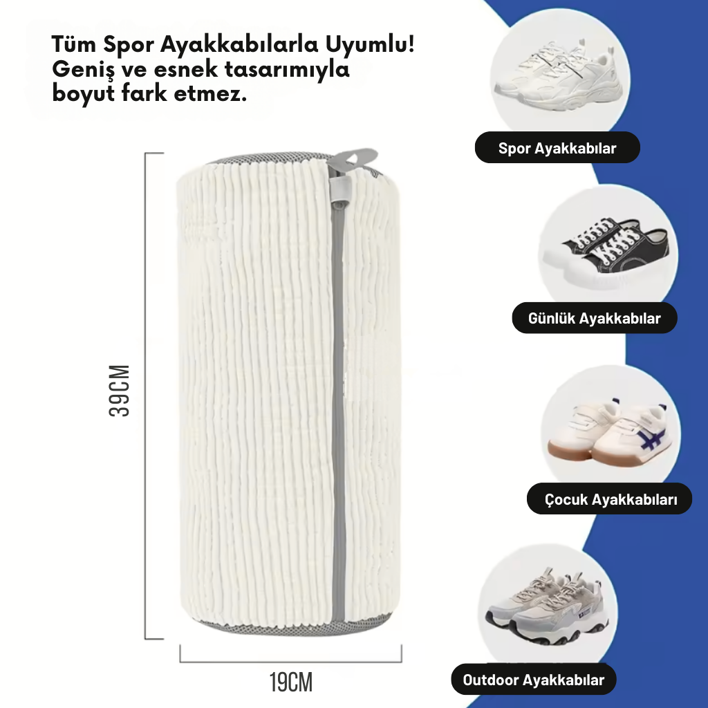 Ayakkabılarınızı torbaya koyun, fermuarı kapatın ve makineye bırakın. Ne deterjan ölçüsü, ne ekstra uğraş. Pratik ve hızlı çözüm.